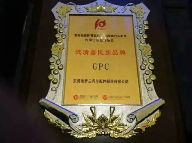 在经过历时4个月,特设网友评审、微信投票、汽配渠道商、专家评审等四大环节的多个渠道评选综合,在大家的大力支持下,罗兰品牌——GPC滤清器在国内将近1000多家滤清器厂家中脱颖而出,最终荣获2016年度滤清器民族品牌!