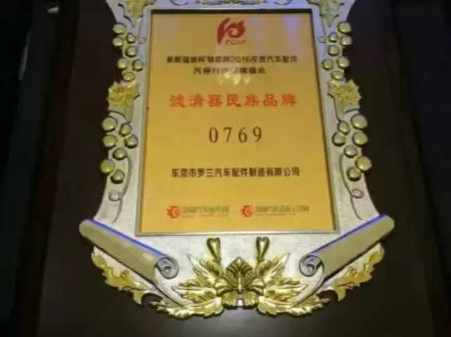 在经过历时4个月,特设网友评审、微信投票、汽配渠道商、专家评审等四大环节的多个渠道评选综合,在大家的大力支持下,罗兰汽配公司旗下0769滤清器在国内将近1000多家滤清器厂家中脱颖而出,最终荣获2016年度滤清器民族品牌!