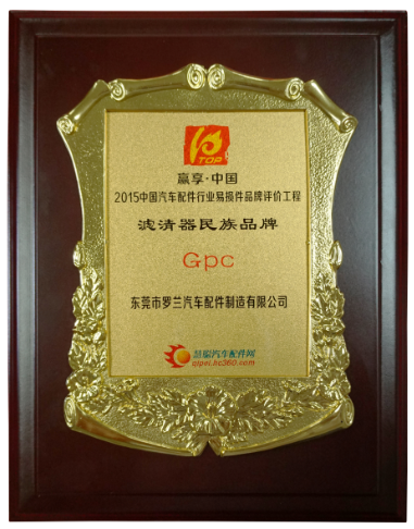 他们是滤清器行业的自主品牌,他们用国人的力量和智慧打造出汽车后市场的一颗颗璀璨的明星,仅以此奖表彰滤清器行业的民族脊梁。东莞市罗兰汽车配件制造有限公司旗下滤清器品牌GPC荣获 2015汽车配件行业易损件品牌盛会颁奖盛典滤清器民族品牌奖项。